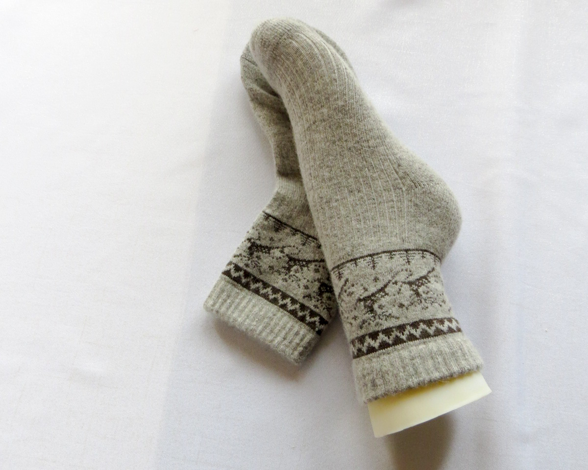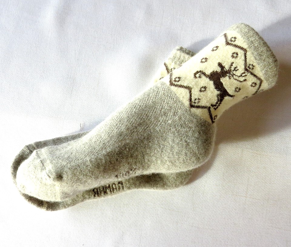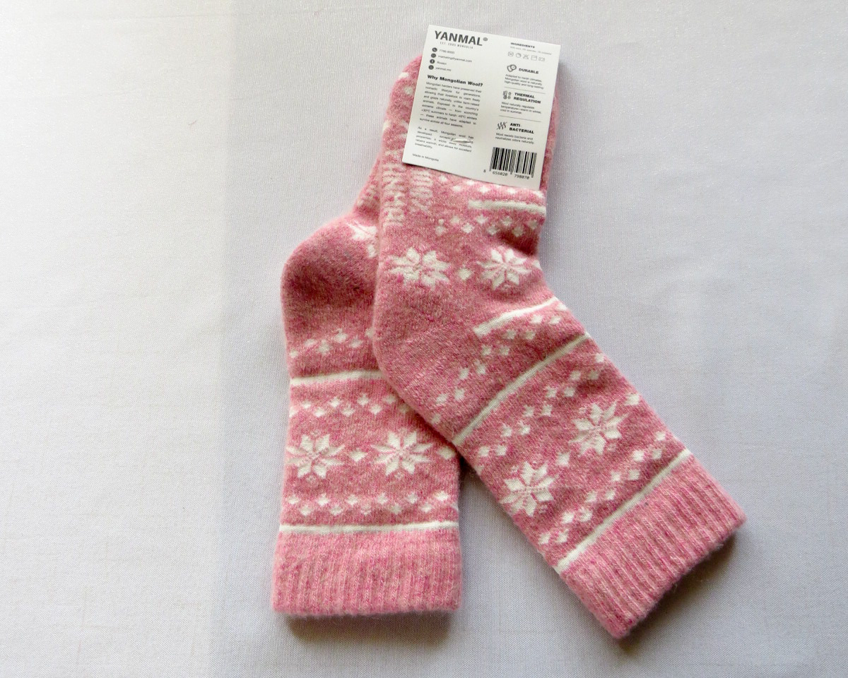 Les chaussettes sont fabriquées à partir de laine du mouton de Mongolie.